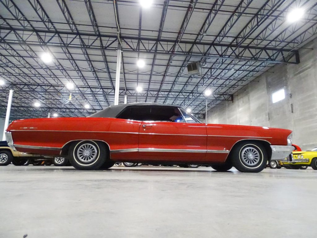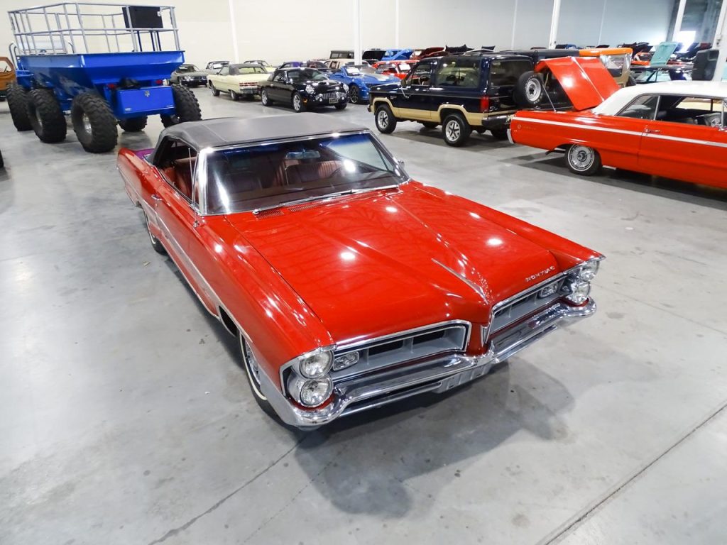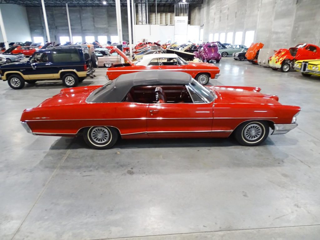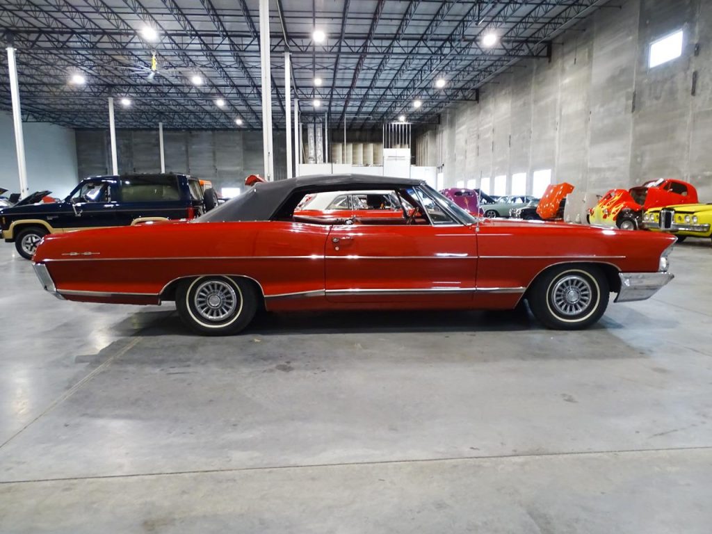Ladies and Gentlemen, Gateway Classic Cars of Kansas City is pleased to offer a very attractive and sporty 1965 Pontiac Catalina Convertible 2 + 2The Pontiac Catalina was part of Pontiac’s full-sized line from 1950 to 1981. Initially, the name was used strictly to denote hardtop body styles, first appearing in the 1950 Chieftain Eight and DeLuxe Eight lines. The 1965 full-sized Pontiacs were completely restyled with more flowing sheetmetal featuring “Coke-bottle” profiles and fastback rooflines on two-door hardtops. Wheelbases increased to 121 inches (3,100 mm) on all models. The 2+2 option changed from a trim package to an all-out performance car package for 1965 similar to Pontiac’s intermediate-sized GTO. The base engine with the 2+2 was now the 338-horsepower 421 four-barrel with the 353 horsepower (263 kW) Tri-Power or 376-horsepower 421 HO with Tri-Power available as options.Our prime example gives a nod to the Catalina Grand Prix, 2 + 2, performance model edition featuring a stunning center console between the front bucket seats and Grand Prix logos and 2 + 2 graphics inside and out. Besides this very cool upgrade by the current owner, what you are looking at, otherwise, is an outstanding original paint, two owner, (65,242), Pontiac Catalina with striking matching red interior and a black convertible top. Top down and your seeing all red! A tremendous find! Powered by a number’s matching 389 cubic inch, V-8 engine backed by a three-speed automatic transmission, this beautiful, red dream machine is impossible to be ignored! Bottom line, if you don’t want to be bothered by people wanting to talk to you about your car, don’t buy this one! This may be your last opportunity to find a survivor Pontiac Catalina! So, stop reading this and call your friends in the classic car business in Kansas City at Gateway Classic Cars. Our number is (913) 815-1340. You can reach us Monday thru Saturday, 9 a.m. thru 5 p.m. cst. Gateway Classic Cars of Kansas City, 1202 South lone Elm Road, Olathe, KS 66061.