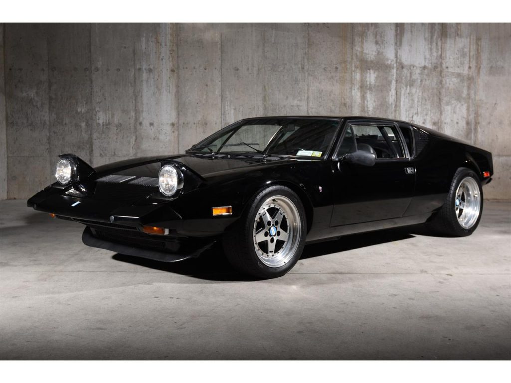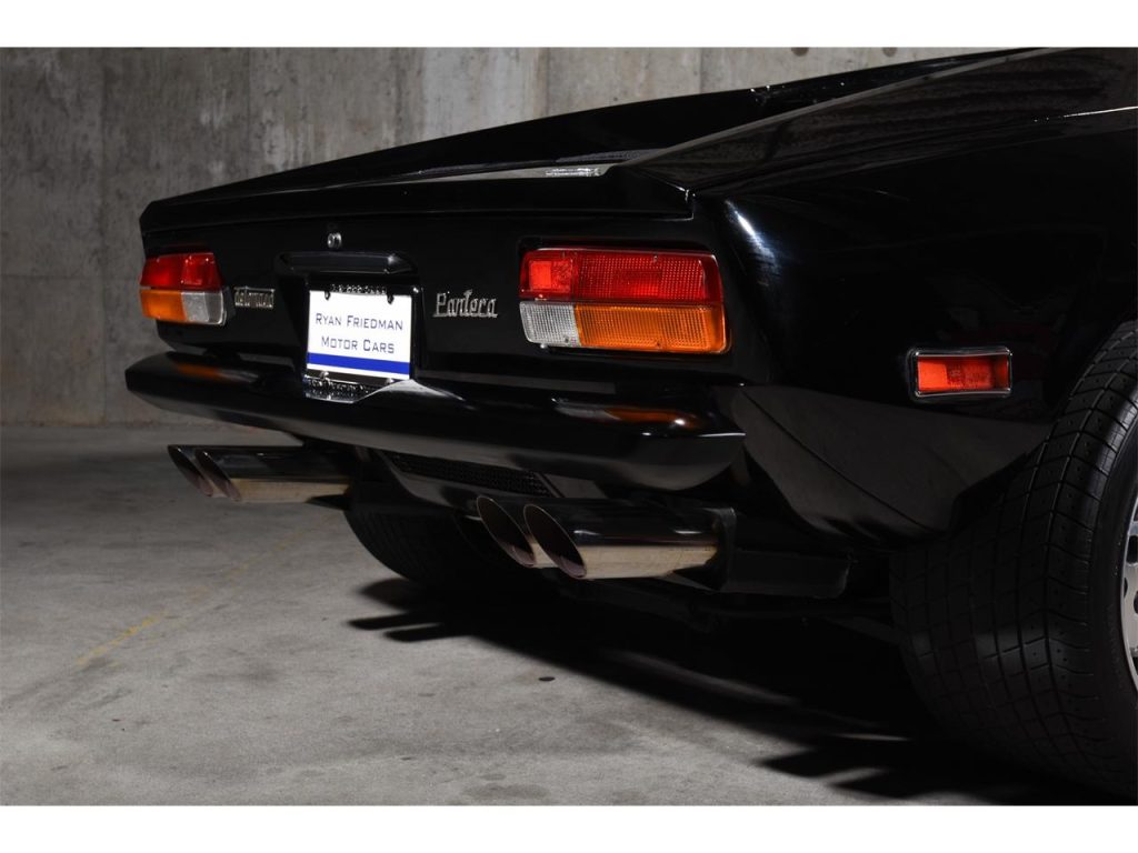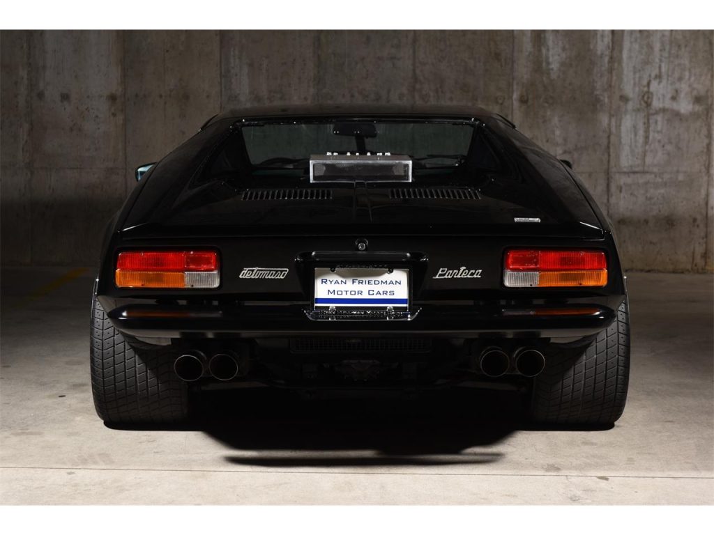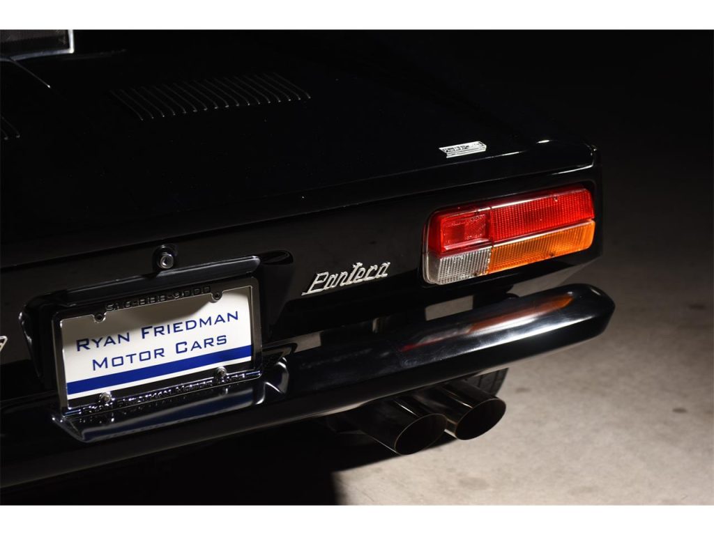 1974 De Tomaso Pantera 5-Speed Coupe: Exuding an Italian-derived design comprised of willowy, sensuous surface areas that captivatingly clasps its trigonal structure which encases a force-induced V8 that speaks with an illustriously eclectic American accent, arouses a response unlike any other. It’s not only enthralling to view but the driving experience it imparts is just as riveting as it’s ravishingly raw — the unrelenting power as provided by forced induction which aids in producing in excess of well over 650 HP coupled to a rather lightweight chassis and an audaciously analog set up, causes for a fabled motoring scenario that’s immersive and exceedingly hyperactive. Produced from 1971 through 1992, less than 7,300 units would depart from De Tomaso Modena, Italy assembly facility with around 1,323 examples bearing the 1974 model year designation such as this rare, impeccable, and stripped-to-bare-metal build that’s draped in a very seductive shade of Black with its streamlined cabin leather also completed in the classic hue. Displaying an odometer reading of a low 18,XXX miles, it has had the liberty of being kept underneath the care of the same owner for just over 3 decades and features some of the following notable equipment such as an Aussie 351 block, stainless steel rocker arms, Jack Roush forced-induction, air-to-air intercooler, plus more! Upon viewing this sensational Pantera, your presence is welcomed by its lustrous Black finish that allows for its esteemed silhouette to be even more admired; design accentuating aluminum bright work adorning select areas; the De Tomaso badge bearing and sculptural front end’s hood featuring vents that are set in between the iconic pop-up headlight assemblies; front fender located ‘Ghia’ badging; attractive 5-spoke wheels featuring Pantera center caps; the contoured rear’s visible and intriguing performance inner workings; ‘De Tomaso’ and ‘Pantera’ badging positioned in between the tail lights; bright-finished, quad exhaust pipes.Just before stepping inside of its dapper Black cabin, you’ll instantly notice the roll bar set up followed by the leather upholstered seats accented by piping, perforations, and stitching, and once inside you can expect to find bright-finished trim on select areas and carpeting that’s finished in black. The driver is encountered by a vintage 3-spoke steering wheel; black Veglia Borletti instrumentation guages featuring a 200-mph speedometer with the dials accentuated by green numerals and needles; centrally located fuel, oil, volt, and water gauges along with the A/C controls that are situated in front of the expressive 5-speed transmission’s gated shifter. The in-cabin audio entertainment experience is provided by a SONY AM/FM/Cassette audio interface. For more info on this emotive Pantera offered by Ryan Friedman Motor Cars, call and/or text us now at (516) 888-9000; we’re authentic motor car aficionados, let’s chat!