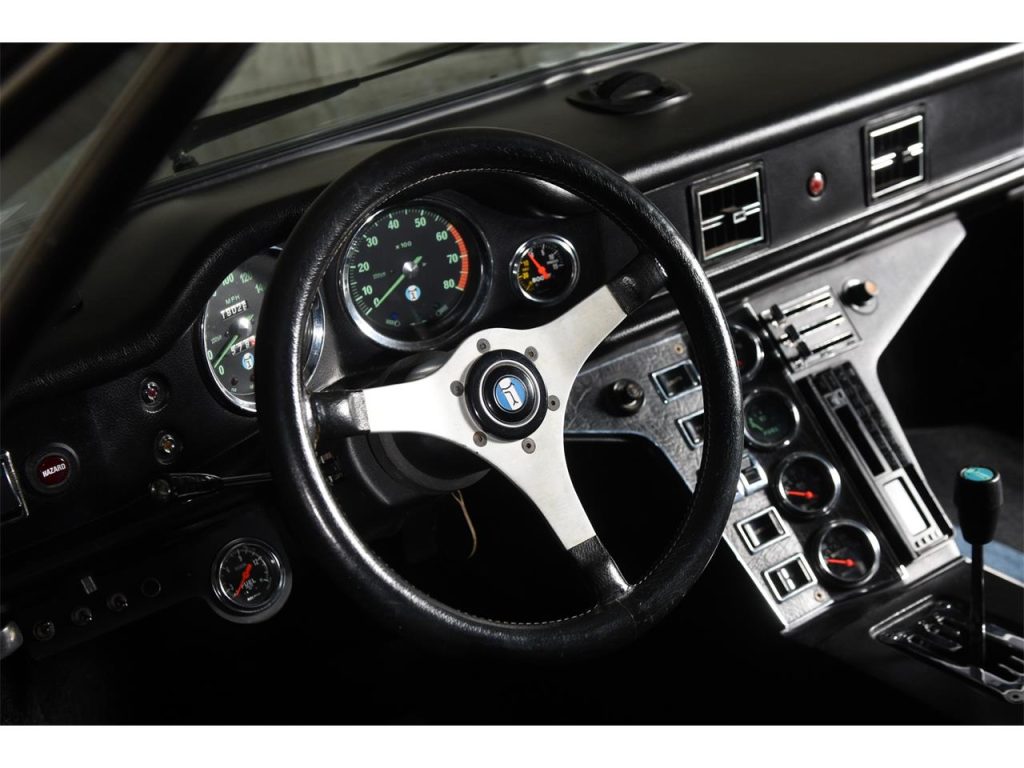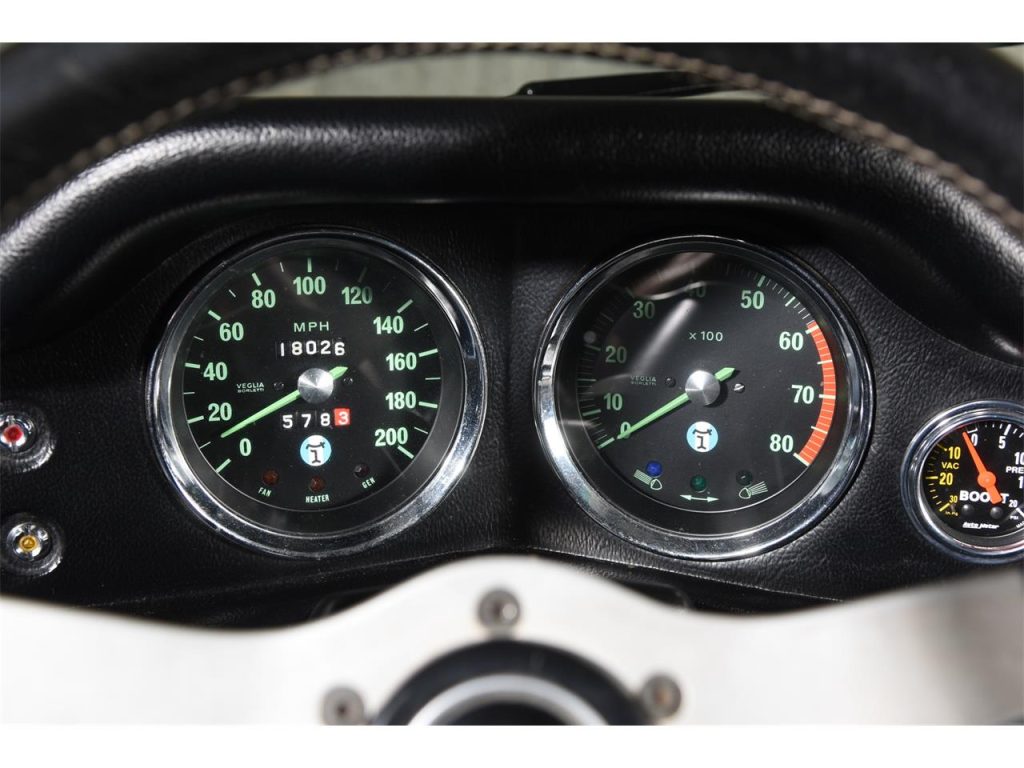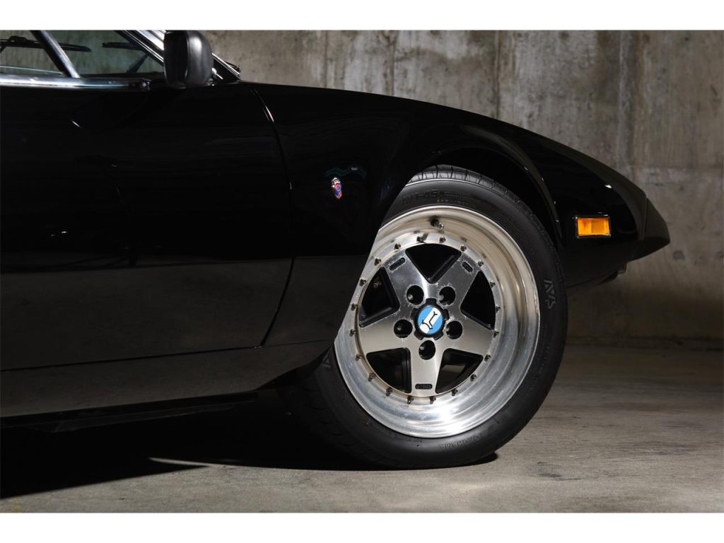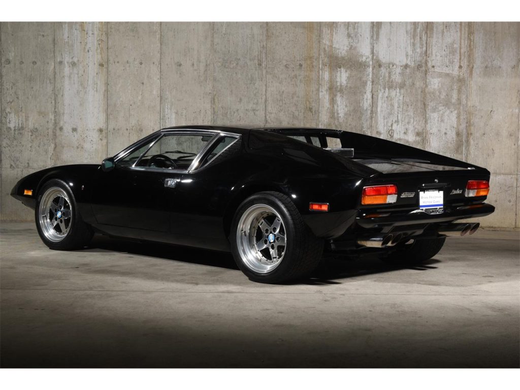 1974 De Tomaso Pantera 5-Speed Coupe: Exuding an Italian-derived design comprised of willowy, sensuous surface areas that captivatingly clasps its trigonal structure which encases a force-induced V8 that speaks with an illustriously eclectic American accent, arouses a response unlike any other. It’s not only enthralling to view but the driving experience it imparts is just as riveting as it’s ravishingly raw — the unrelenting power as provided by forced induction which aids in producing in excess of well over 650 HP coupled to a rather lightweight chassis and an audaciously analog set up, causes for a fabled motoring scenario that’s immersive and exceedingly hyperactive. Produced from 1971 through 1992, less than 7,300 units would depart from De Tomaso Modena, Italy assembly facility with around 1,323 examples bearing the 1974 model year designation such as this rare, impeccable, and stripped-to-bare-metal build that’s draped in a very seductive shade of Black with its streamlined cabin leather also completed in the classic hue. Displaying an odometer reading of a low 18,XXX miles, it has had the liberty of being kept underneath the care of the same owner for just over 3 decades and features some of the following notable equipment such as an Aussie 351 block, stainless steel rocker arms, Jack Roush forced-induction, air-to-air intercooler, plus more! Upon viewing this sensational Pantera, your presence is welcomed by its lustrous Black finish that allows for its esteemed silhouette to be even more admired; design accentuating aluminum bright work adorning select areas; the De Tomaso badge bearing and sculptural front end’s hood featuring vents that are set in between the iconic pop-up headlight assemblies; front fender located ‘Ghia’ badging; attractive 5-spoke wheels featuring Pantera center caps; the contoured rear’s visible and intriguing performance inner workings; ‘De Tomaso’ and ‘Pantera’ badging positioned in between the tail lights; bright-finished, quad exhaust pipes.Just before stepping inside of its dapper Black cabin, you’ll instantly notice the roll bar set up followed by the leather upholstered seats accented by piping, perforations, and stitching, and once inside you can expect to find bright-finished trim on select areas and carpeting that’s finished in black. The driver is encountered by a vintage 3-spoke steering wheel; black Veglia Borletti instrumentation guages featuring a 200-mph speedometer with the dials accentuated by green numerals and needles; centrally located fuel, oil, volt, and water gauges along with the A/C controls that are situated in front of the expressive 5-speed transmission’s gated shifter. The in-cabin audio entertainment experience is provided by a SONY AM/FM/Cassette audio interface. For more info on this emotive Pantera offered by Ryan Friedman Motor Cars, call and/or text us now at (516) 888-9000; we’re authentic motor car aficionados, let’s chat!