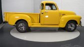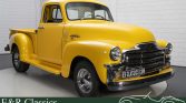 As you can see in the photos, this Chevrolet 3100 5-window is really a sight to see. The yellow paint pops out and fits perfectly with the impressive looks of the Pick-up. It is equipped with the Deluxe chrome bumpers and grille that complete the overall picture. The interior is in a neat condition and is equipped with black upholstery. As befits a real 1950s Pick-up, the loading platform is inlaid with wood.