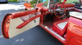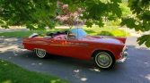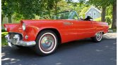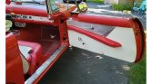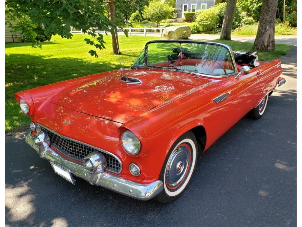 Check out this well maintained 1955 Ford Thunderbird Convertible with continental kit brought to you by Zoom Classic Cars. This is a very solid T-Bird with many new parts. Features the original numbers matching 292CI V8 engine with 3 speed manual transmission. Engine was recently rebuilt and includes a rebuilt carb, oversized radiator with new 6 blade fan, new fuel and water pumps and has been driven less than 100 miles since rebuild. Other recent work includes new clutch, new gas tank and gas lines, rebuilt drum brakes all around with a 2 cylinder Master cylinder from a 1967 Mustang. Exterior of the car is in overall very solid and presentable condition with all the panels lining up nicely and all the badging and chrome in tact. Brand new manual Convertible white top. Car also has a 2nd hard top. Single stage poly paint that has some nicks and scratches as shown and a little bubbling on the driver’s side door. There is no evidence of any major rust issues with the car. The red and white vinyl Interior of the car is in very good condtion with no rips or tears on the seating, dash in excellent condition. 4 way power seats, manual steering and brakes. The owner added Dynamat insulation below the carpeting to reduce noise and reduce the heat from underneath. All gauges intact and work as they should inlcuding aftermarket gauges for volts, water temp and oil pressure. AM/FM aftermarket radio. Owner also recently replaced the vacuum driven wipers with electric wipers for reliability. Nicely carpeted trunk and very clean undercarriage that features brand new dual exhaust that exits through stainless canisters through the rear of the car. Continental kit was added after market and is in very nice condiion. This is a very solid better-than-driver-quality turn-key Tbird that runs and drives 100%. Car comes with a folder of receipts for recent work done as well as electric and shop manuals and car cover. Registered, inspected and stored in MA with clean title. Don’t miss your opportunity for some Summer fun with this reasonably priced classic Ford roadster. Call Jeff for more information or to schedule a viewing. Thanks for looking.