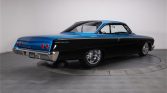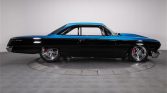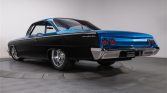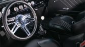 Hoist this Chevy’s sculpted hood and you’ll find 632 cubic inches of custom Dart big block that twists stout 10.2 to 1 compression into 1,015 dyno-proven horsepower and a massive 875 lb./ft. of tire torching torque! Carefully assembled and expertly detailed, that brutal stoplight slayer breathes through a custom cowl induction air cleaner, which caps a 1,250 cfm 4-pot that was sourced directly from AED Performance. A perfect combination of air and 93-octane flows from a polished Pro-Filer Performance intake to polished Pro-Filer 12 degree cylinder heads. Those heads tilt custom valve covers between Jesel roller rockers, Jesel roller lifters and billet breathers. Inside the Dart Big M iron, a Callies Magnum crank pushes quality JE pistons. Hot MSD ignition sequences fire through an MSD Pro-Billet distributor and loomed Taylor plug wires. Spent gases roar through bundles of coated headers that were custom fabricated by famed North Carolina hot rodder Ken Thompson. Charge comes courtesy of a polished alternator that, like the car’s polished AC compressor and Polished Edelbrock water pump, spins a polished Billet Specialties Tru Trac accessory drive. Cooling is provided by an aluminum Flex-A-Lite radiator that’s dressed with a polished cap, a polished tube and electric puller fans. And the car’s custom engine bay is tricked to the max, with items like braided hoses, polished reservoirs and a liquid-filled AED Performance fuel pressure gauge adding both form and function.
