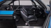 Swing this Chevy’s doors and you’ll spy a stylish leather cockpit that was stitched by Lexington, North Carolina’s Ray Hester. Custom leather hides join serious Simpson harnesses to dress a quartet of customized SCAT Procar buckets. From the driver’s perch, a glossy dash hangs an impressive array of AutoMeter C2 telemetry above Wilwood foot pedals and controls for Vintage Air conditioning. Fade-free carpet stacks a custom steel console, complete with a traditional Hurst shifter, on thick sound insulation and a flat floor that’s courtesy of the body’s custom channeling. Leather side panels center billet handles in front of modern power windows. An 8-point roll cage, complete with a removable harness bar, traces a sculpted headliner. The driver spins a polished and half-wrapped steering wheel around a tilting Ididit column. And behind the passengers, a fully upholstered trunk hides the car’s relocated battery.