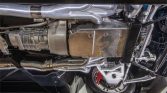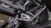 We’ve said it time and time again, and the old adage still proves true. A pro-tourer simply isn’t an authentic pro-tourer unless its significant power enhancements are augmented by significant chassis hardware. That’s the only way 100% of the car’s performance potential will ever be realized. This Bel Air’s spry big block is, first and foremost, augmented by a custom-fabricated perimeter chassis that was, like the aforementioned headers, pieced together by former Holman & Moody employee Ken Thompson. At the center of those tubes, a Tremec TKO600 5-speed makes excellent use of a .82 overdrive. Speaking of gears, a smoothed and dressed Moser 12-bolt seats a posi-traction differential and 3.37 cogs inside a NASCAR-style rear-clip that’s finished with mini tubs, a heavy duty sway bar and double-adjustable QA-1 coil-overs. Turns come courtesy of a power-assisted, NASCAR-style gearbox, which rides inside a NASCAR-style front-clip that’s finished with a second heavy duty sway bar and more double-adjustable QA-1 coil-overs. At the corners, red Wilwood calipers squeeze 20 pistons around drilled and slotted rotors. Spent gases flow into coated, custom-fabricated pipes, which angle thin mufflers in front of tailored rockers that hug rowdy, NASCAR-style boom tubes. Miles of smiles are supplied by a 25-gallon fuel tank. Power meets the pavement through polished Budnik Ice, which spin 245/45ZR18 Goodyear Eagle F1s in front of 275/45ZR20 Goodyear Eagle F1s. And this Chevy’s undercarriage is so superbly detailed that every stainless bolt has literally been cut to fit and meticulously polished on every angle.