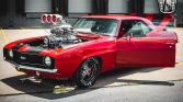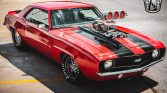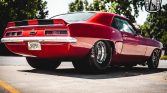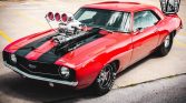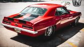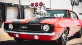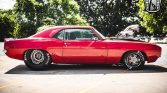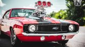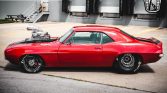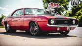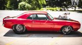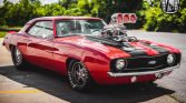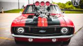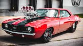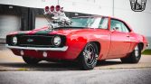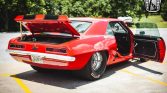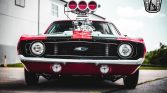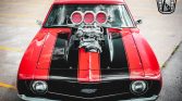 Our Nashville showroom is pleased and proud to digitally present for you this incredible 1969 Chevrolet Camaro. Now most of this description will be a list of components used to create this boulevard bruiser so I will take this time to say, WOW! This ’69 Camaro contains both beauty and beast in one tight package. Now if you are looking for air conditioning, GPS and heated seats, keep looking, but if you are looking for a street machine that easily plants 1,000 horsepower to the pavement then break out your bank book and give us a call. Oh, by the way, after you reach 1,000 horsepower there are two kits of NOS that add an additional 1,000 ponies, can you say 2,000 horsepower? All this power packed into a beautiful 1969 Camaro sporting a new red paint job with black rally stripes. Now for the list of components. So, the builder started with a 596 cubic inch block and added a Manley Pro crankshaft with a 4.5 throw, Manley pro I beam rods with ARP bolt were connected to the crank Race tech pistons. Edelbrock Pat Musi 24-degree heads handle the valve train and direct the air flow. As if this were not already over kill, bolt what I believe to be an 8-71 Blower from “The Blower Shop”. Now to feed this beast a pair of Holley Dominators sit on top, and a pair of Lemon headers help the exhaust gasses reach the back of the car. There is more to tell you about with this engine but space is running out so. The transmission is a built turbo 400 with a reverse pattern manual valve body and the rear axle is a Ford 9″ that houses a gear set of 3:56 to 1. With a full roll cage, racing seats and harnesses this car would just need wheelie bars and parachute and larger pully to be a serious contender at any strip but in it’s current state it is easy enough to drive to have fun on the road of your local town. Imagine how quickly the hoods would close when this car lopes on to the lot of the local hot rod hang out. One final note, the thought of the blower surge wakes me up at night and I have to read the brochure for the new Mustang to go back to sleep. Options for this 1969 Camaro include: A blower sticking through the hood, Head lights, turn signals, Racing seats and harness and a bright red button that unleashes 1,000 more horsepower, if you dare, do you?Sale held pursuant to permit No. 19289 of department of licenses granted the 14th day of August 2015.