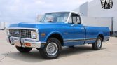 Gateway Classic Cars of Dallas is proud to offer this sharp 1972 Chevrolet C10 Pickup Truck. The current owner obtained this long bed pickup out of Texas and has enjoyed it since. Walking around this C10 one should notice the gloss two toned blue with white paint theme. Adding to the curb appeal are chrome bumpers, spray in bedliner, toolbox, chrome mirrors, chrome/black trim, chrome handles, white Chevrolet painted on the tailgate, dual exhaust with chrome tips, and 15″ rally wheels wrapped in white letter radial tires. The blue vinyl seat, blue door panels, and blue dash all flow well with the paint theme. This pickup has some upgraded features mixed with V8 performance. Some notable features include an AM/FM radio, power steering, seat belts, and a tow receiver. Powering this C10 is claimed to be a rebuilt 350 CID V8 engine that is mated to a 3-speed manual transmission. This truck is sifted from the column or “three on the tree”. Opening up the hood and you will notice the firewall was repainted to match the exterior, see chrome Edelbrock air cleaner, chrome valve covers, Edelbrock aluminum intake, Edelbrock carburetor, and a 12-volt electric system. If you are looking for a C10 to take to shows or even cruise in, this could be the one for you. This 1972 Chevrolet C10 Pickup Truck is listed by our Dallas Showroom and can be viewed in greater detail including 100+ HD pictures and an HD video at www.GatewayClassicCars.com. For additional information, please call our knowledgeable staff at (817)-310-9400 or email us at [email protected] Our Dallas Showroom is located at 1250 Mustang Drive Suite 500, Grapevine, TX 76051. Hours: Monday through Saturday, 9 AM to 5 PM EST, please reach out to set an appointment.See more at: www.gatewayclassiccars.com/DFW/2051/1972-Chevrolet-C10
