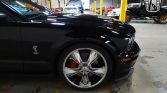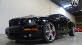 Gateway Classic Cars is proud to present this 2009 Ford Mustang Shelby GT500 for sale. This GT500 is powered by a 5.4L 32V Supercharged V8 backed by a TR6060 6 Speed Manual Transmission. Painted in Black with aftermarket Ghost racing stripes and window louvers on the rear window and rear side windows. This GT500 has been lowered and sits on a set of Foose Wheels wrapped Generals. This interior is Black leather featuring power everything, AM/FM/CD Radio, GPS…