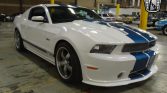 Gateway Classic Cars is happy to show off this 2011 Ford Mustang Shelby GT350. This Shelby GT350 is #10 of 159 produced in 2011. Painted in white with Gaurdsman Blue Stripes and a custom GT350 Black with Red stitching Leather interior package. Powered by a 5.0L V8 Optioned with a 525 Black Ford Racing Supercharger and CNR Cooling Package. Stopping this Shelby GT350 is a set of front 6 piston and rear 4 piston Willwood Performance Brakes and Calipers. Options on this 2011 Ford Shelby GT350 include AC, AM/FM Radio, Anti-Theft system, Airbags, Power Everything, Seatbelts, Performance Tires and Leather Interior.